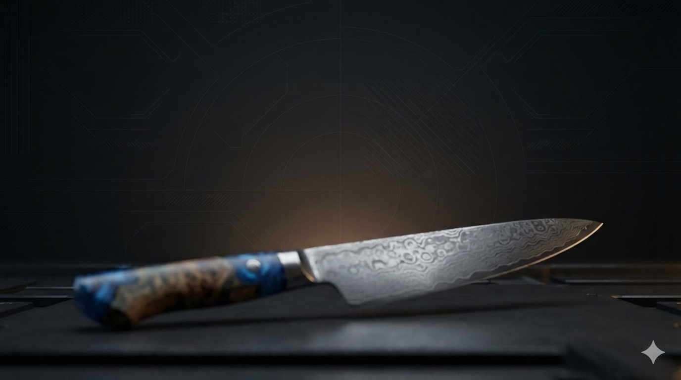 Custom Precision Chef Knife — Damascus Steel with Luxury Epoxy Wood Burl